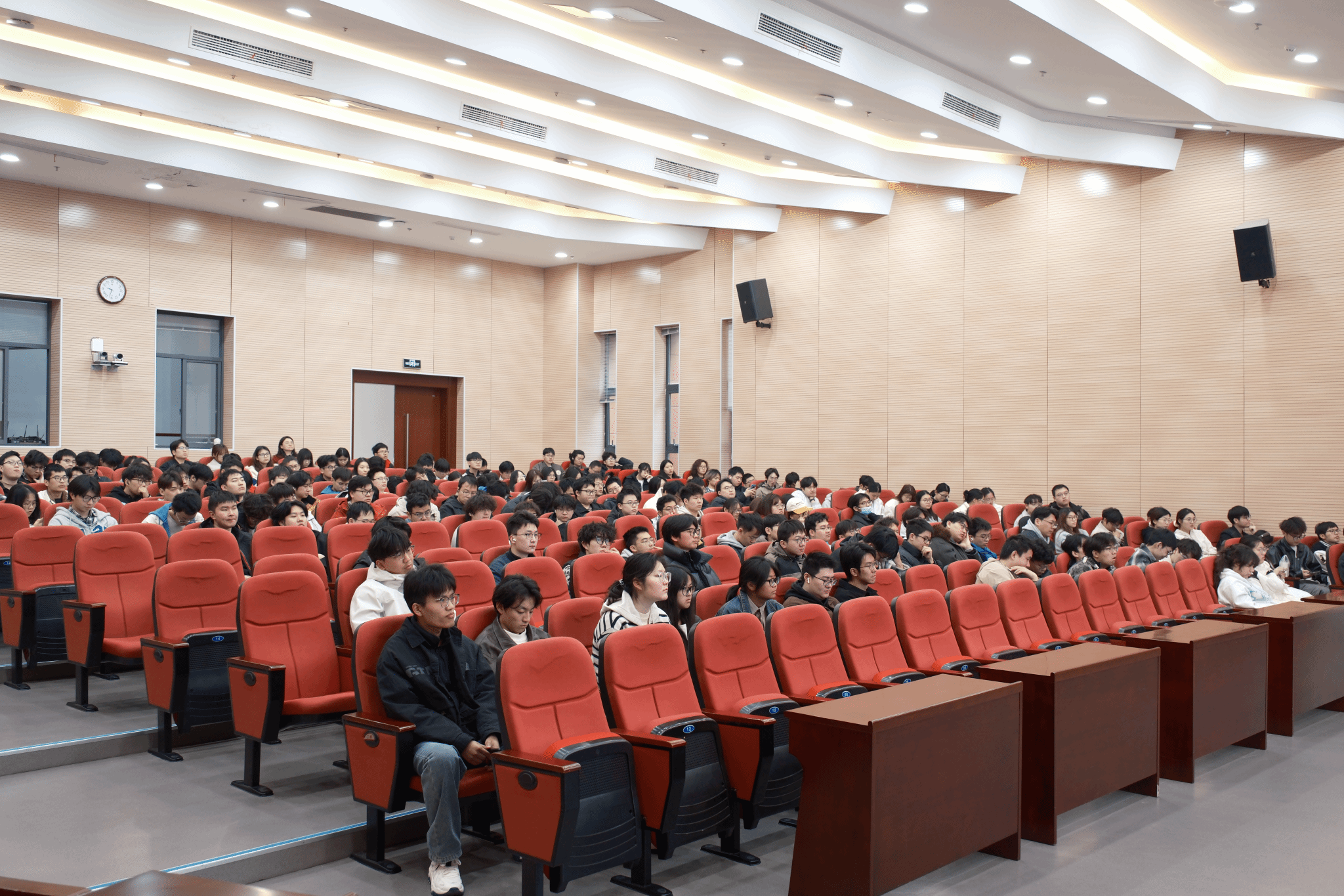 副书记徐斌在发言中鼓励同学们树立正确的就业观念,切勿盲目追逐高薪或热门行业,而应正视自身情况,结合个人兴趣与专长,先实现就业,再考虑择业,积极参与各类就业活动。同时,他对同学们在校期间的成长给予肯定,期望同学们毕业后仍能心系母校。