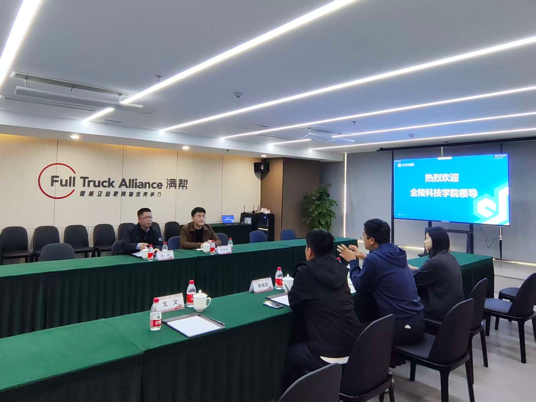 学院一行首先参观了企业展厅,深入了解满帮集团作为南京市“互联网+物流”科技领军企业的发展历程、业务布局及技术创新成果。座谈交流会上,李瑞景介绍,满帮集团通过大数据、人工智能等技术赋能物流行业,持续优化货运效率,其核心业务与软件工程专业优势高度契合,期待与高校深化合作、实现双向赋能。徐斌就人才培养模式及提升毕业生就业质量,指出校企合作是深化产教融合的关键路径,学院始终重视与行业头部企业合作,希望以此次访企拓岗为契机搭建多领域合作桥梁。