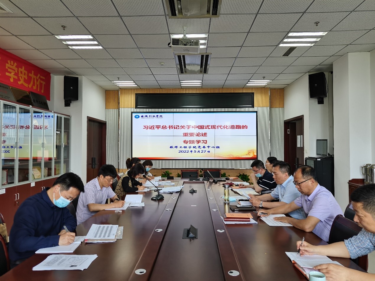 5月27日上午,太阳集团tyc539macau在科技楼325组织开展了中心组学习,专题学习了习近平总书记关于中国式现代化道路的重要论述,会议由学院党委书记徐志国主持,全体中心组成员参与了学习。