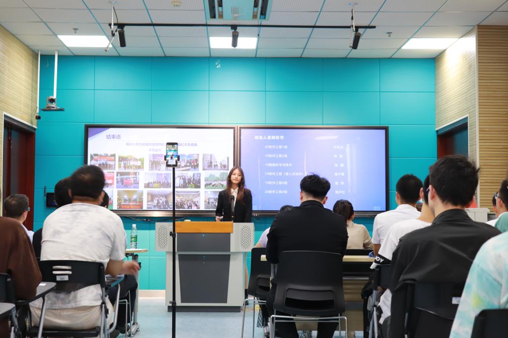 答辩会上,参加国家奖学金答辩会的六位同学依次从基本情况、竞赛获奖、社会实践、创新创业等多个方面进行了答辩介绍。他们分享了个人在国家、省市比赛中取得的优秀成果,在社会实践中获得的亲身体验,在创新创业中面临的困难,他们迎难而上、勤学苦练,用自己的实力和韧性迎接旭日。每位答辩候选人在答辩过程中展现出的积极进取的精神风貌赢得了阵阵掌声。最后,徐斌书记对本次答辩会作出了总结。徐书记对候选人的面试答辩表达了肯定并寄予殷切期望,希望他们能充分发挥榜样引领作用,心怀感恩、知行统一、敢为人先;同时也号召同学们以优秀学子为榜样,向着航标指向砥砺前行、不负韶华,争做品学兼优的新时代大学生。