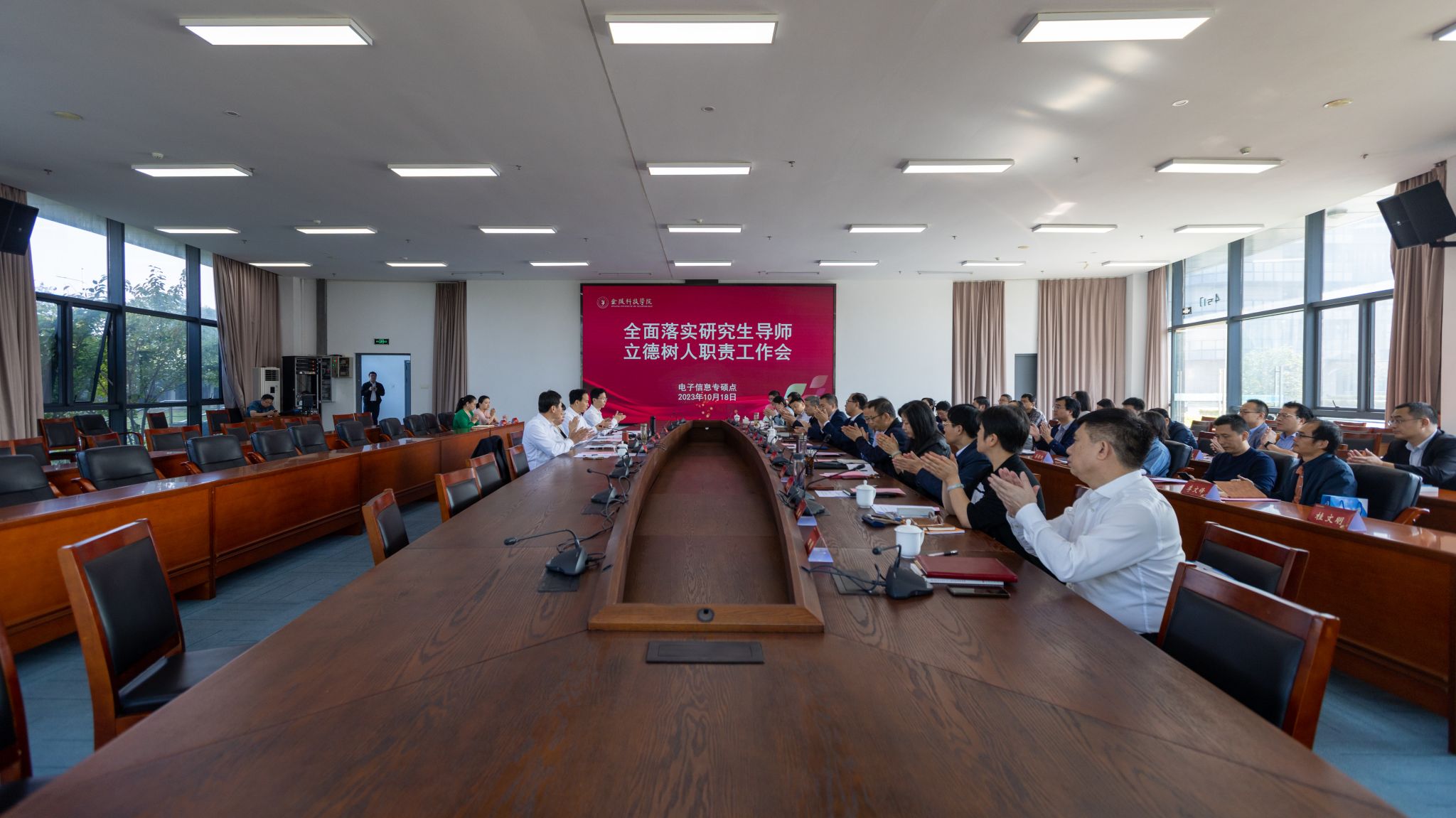 10月18日下午,我校在科技楼三号楼110会议室召开电子信息专硕点全面落实研究生导师立德树人职责工作会。校长刘永彪、副校长张燕、副校长叶智锐,研究生处负责人、牵头学院和共建学院书记、院长及2023级研究生导师、研究生秘书、研究生辅导员等参加会议。会议由副校长、电子信息硕士点负责人张燕教授主持。