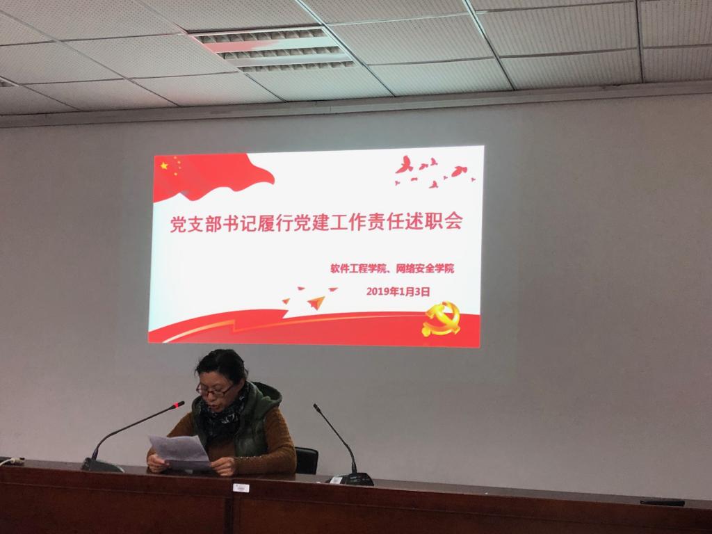 2019年1月3日上午,太阳集团tyc539macau、网络安全学院党委所辖师生党支部书记开展述职工作专题活动。学院全体党员参加此次支部书记述职报告会。王智钢、王爱侠、胡国兵、邵彦婷4位党支部书记依次上台做述职报告,学院指定专职组织员做好会议记录。