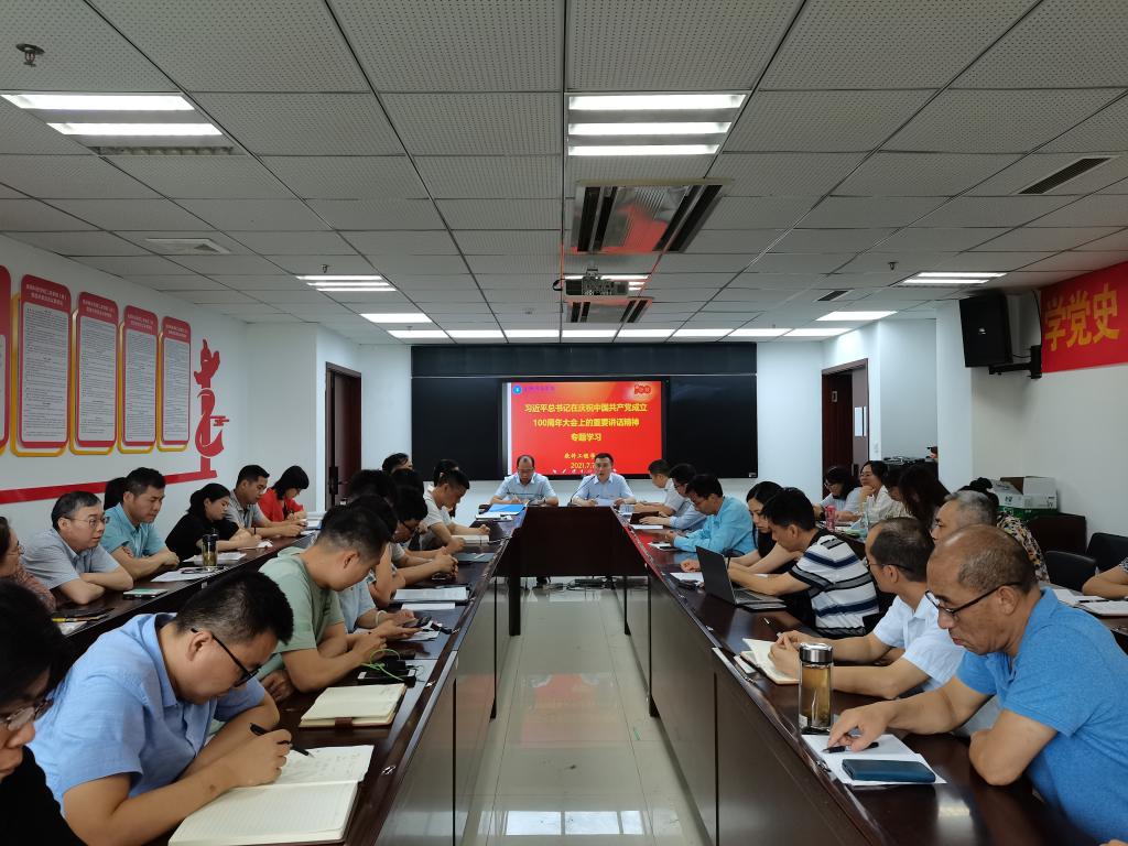 7月7日下午,太阳集团tyc539macau召开教工政治学习会,专题学习习近平总书记在庆祝中国共产党成立100周年大会上的重要讲话精神,会议由学院党委书记徐志国主持,学院全体教职工参加。