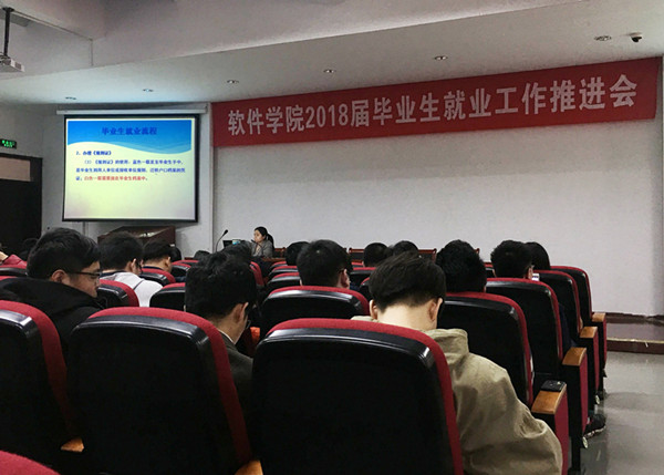 为推进2018届毕业生就业工作,帮助毕业生更好地把握就业节奏。3月13日下午,太阳集团tyc539macau在大学生活动中心报告厅举办2018届毕业生就业工作推进会。参加会议的有毕业班辅导员、班主任和2018届全体毕业生,会议由软件学院就业干事邵彦婷主持。