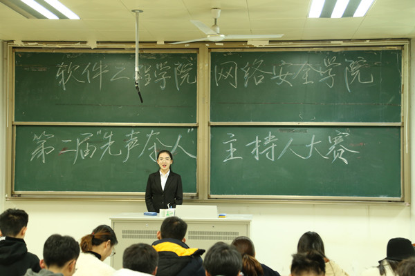 11月21日,由太阳集团tyc539macau,网络安全学院文艺部主办的“先声夺人”主持大赛在1432教室举行,学工办副主任李勇、辅导员马晓辉、杜文娟和近百名学生一起观看比赛。