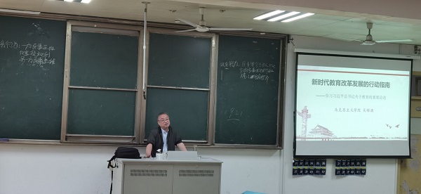 吴锦旗教授指出,习近平总书记关于教育的重要论述,系统回答了一系列方向性、全局性、战略性的重大问题,标志着我们党对教育发展规律的认识达到了新高度,为新时代中国特色社会主义教育提供了根本遵循依据。讲座中,吴老师提出教育战线要参悟透、领会准、运用好总书记关于教育的重要论述,一是要明白教育是国之大计、党之大计;二是坚持优先发展教育事业;三是培养德智体美劳全面发展的社会主义建设者和接班人;四是要加强教师队伍建设。