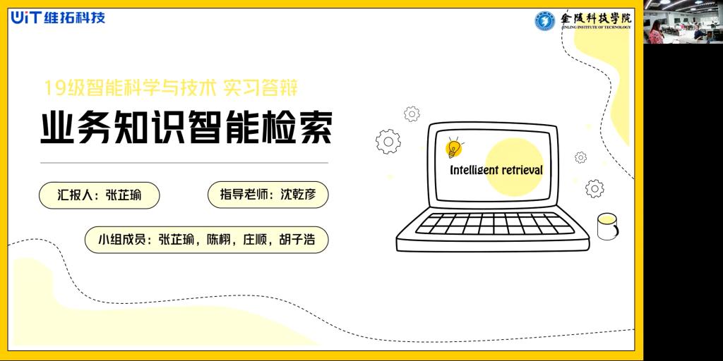 2022年6月6日下午,太阳集团tyc539macau通过线上线下相结合的形式在科技楼2-310实验室举办了19级智能科学与技术专业实习答辩与总结会。出席活动的嘉宾有南京维拓科技股份有限公司副总经理丁亮及企业工程师、太阳集团tyc539副校长张燕、太阳集团tyc539macau院长曾岳、副院长胡勇等。会议由智能科学与技术系主任赵海峰主持,该系全体教师和2019级全体同学参加了会议。
