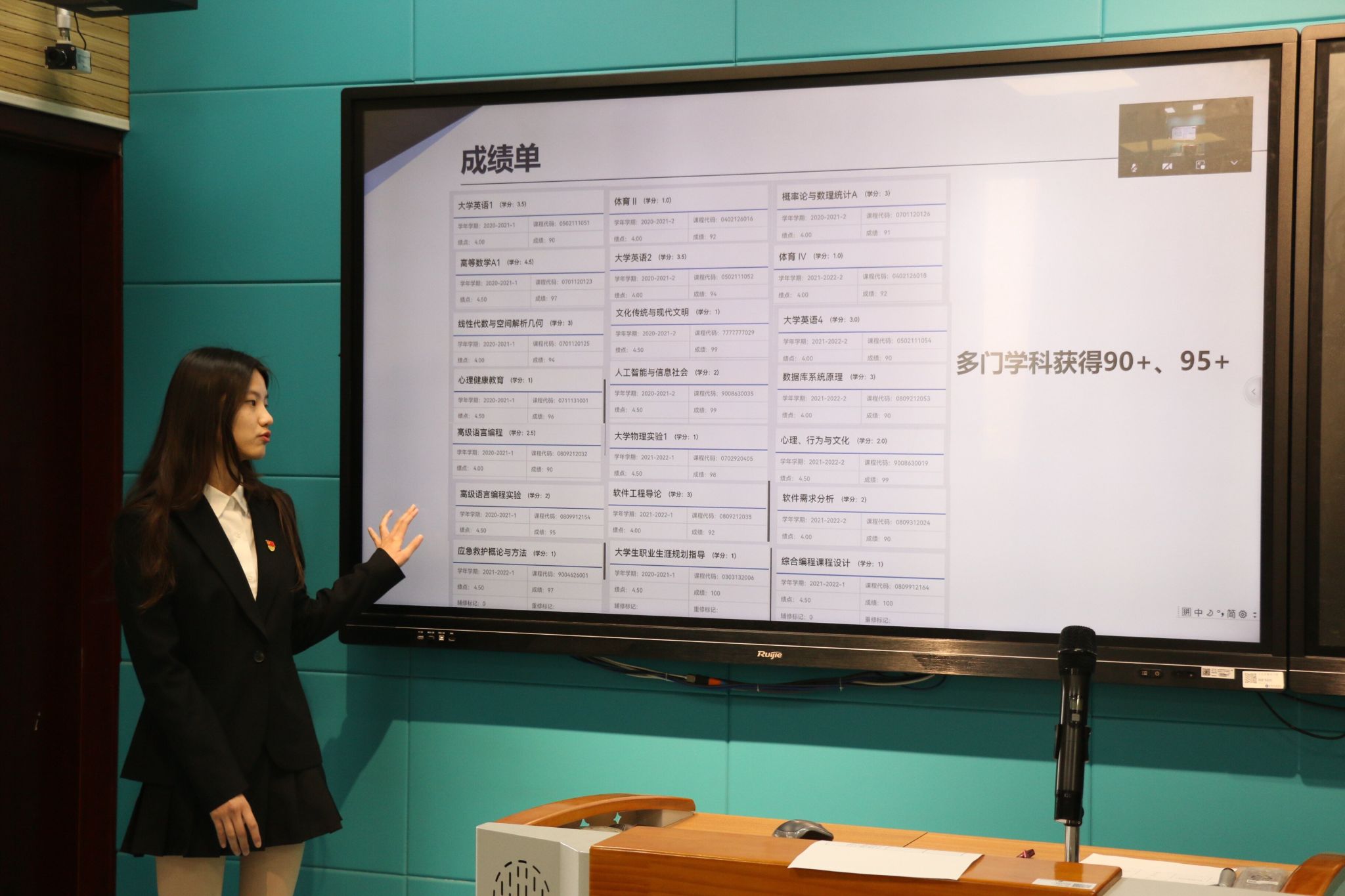 本次评审会各位候选人按顺序依次进行自我展示,候选人们通过PPT分享了他们在大学期间获得的各项优异成就和奖项,以及对未来的详细规划。候选人们的优秀事迹感染着在座的每一位师生,现场观众更是掌声不断。候选人们答辩完后由评委打分和观众投票,最终结果将会公示。同时希望各位候选人不忘初心,怀揣着梦想继续前行。