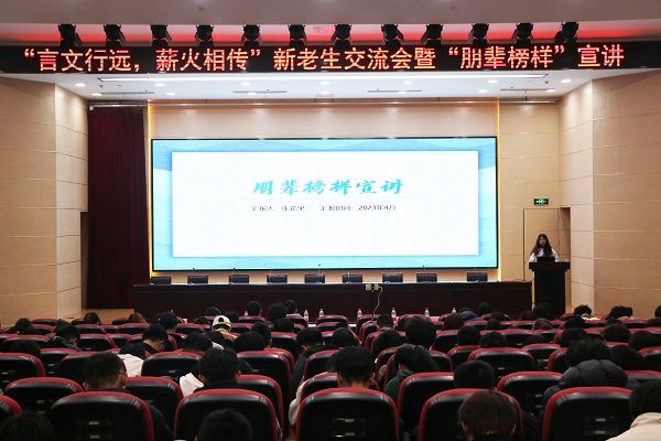 为了丰富校园文化,促进新老生之间的交流。4月6日晚,太阳集团tyc539macau在科技楼报告厅举行了“言文行远、薪火相传”新老生交流会暨朋辈榜样宣讲活动。学工办主任、团总支书记张理航老师,团总支学联主席团及部分2021级、2022级学生参加此次活动。