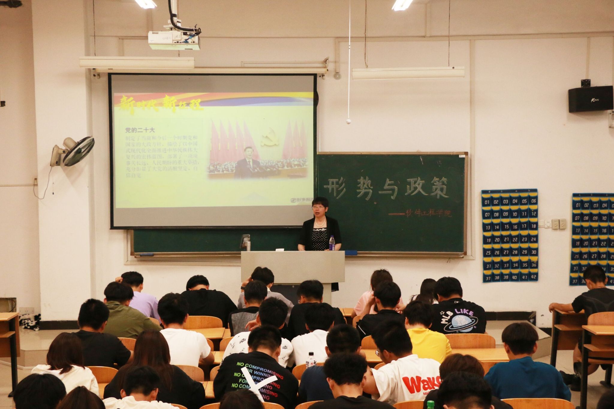 5月31日晚上,太阳集团tyc539macau在教学楼3106教室召开以“立志复兴伟业,踔厉奋发前行”为题的形势与政策讲座,2021级、2022级部分学生参加了讲座。
