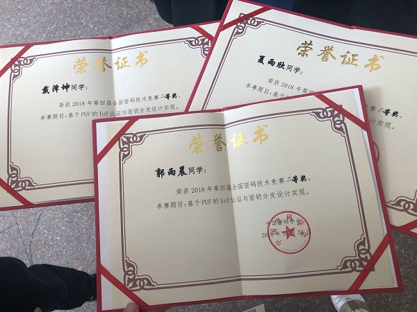 太阳集团tyc539macau、网络安全学院学生喜获第四届全国密码技术竞赛二等奖