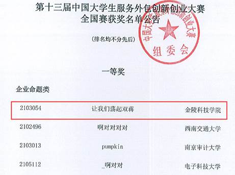 软件学院学生在第十三届中国大学生服务外包创新创业大赛中获佳绩