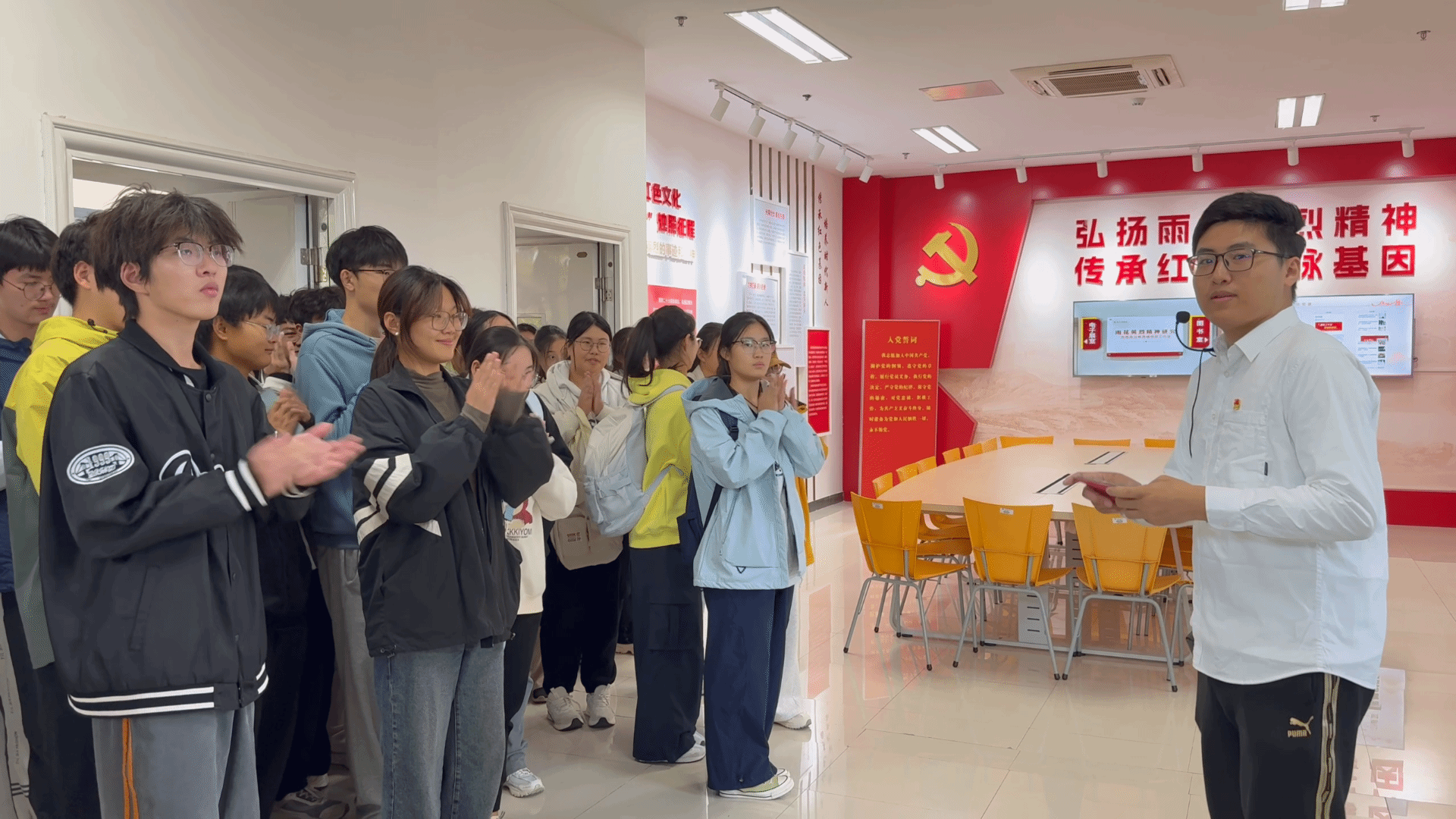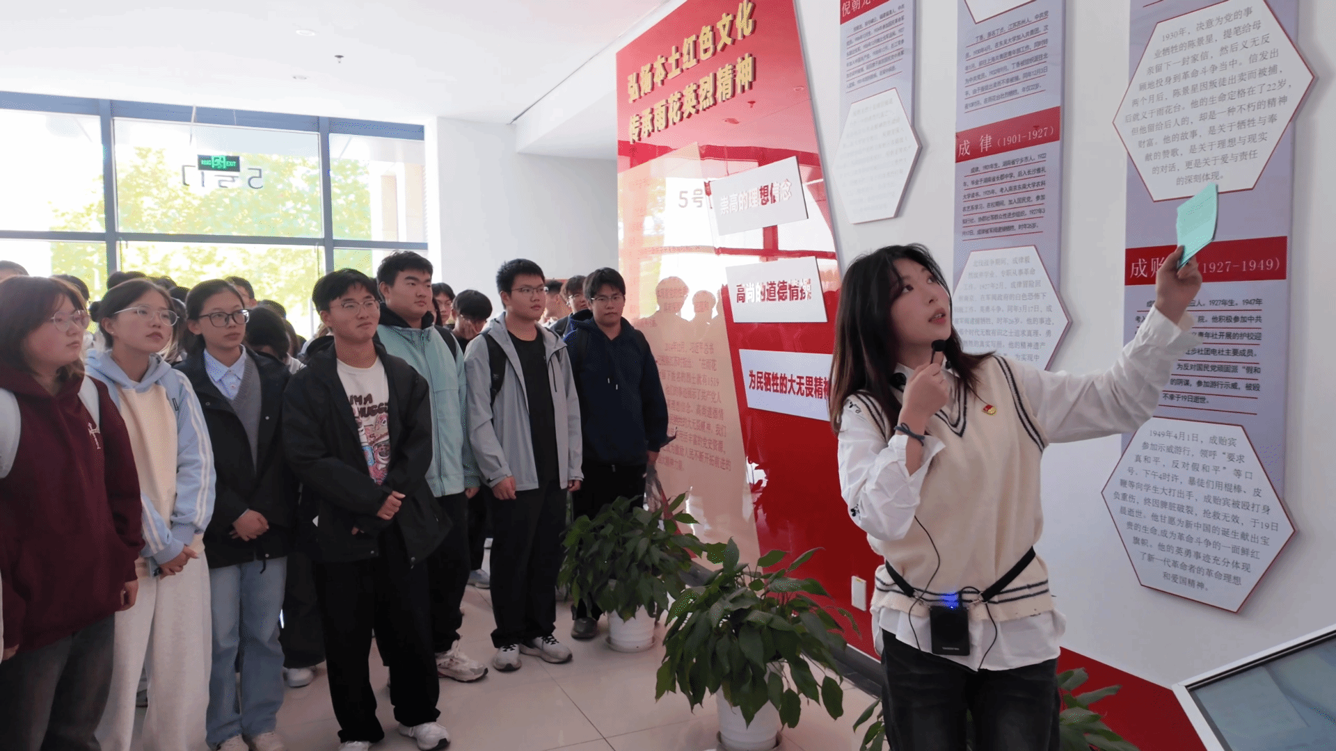 活动伊始,宣讲团成员带领新生们有序参观了雨花英烈事迹展厅。展厅内,一幅幅珍贵的历史照片、一件件饱经沧桑的实物,生动再现了雨花英烈们为了理想信念,不惜抛头颅、洒热血的英勇事迹。宣讲团成员们结合展品,为新生们详细讲解了背后的历史背景和感人故事,让新生们仿佛置身于那个战火纷飞的年代,深刻感受到了英烈们的崇高精神。宣讲过程中,五位宣讲员以饱满的热情、生动的语言,向新生们详细介绍了雨花英烈们的生平事迹和伟大精神。他们从不同角度、不同层面,讲述了英烈们在面对敌人残酷折磨时坚守信仰、宁死不屈的壮举,分享了英烈们为了民族解放事业,舍小家为大家的无私奉献故事,介绍了英烈们在艰苦环境中依然坚持学习、传播进步思想的执着精神。同时,他们还分享了学院在推进文化自信,弘扬中国精神方面的探索与成果。