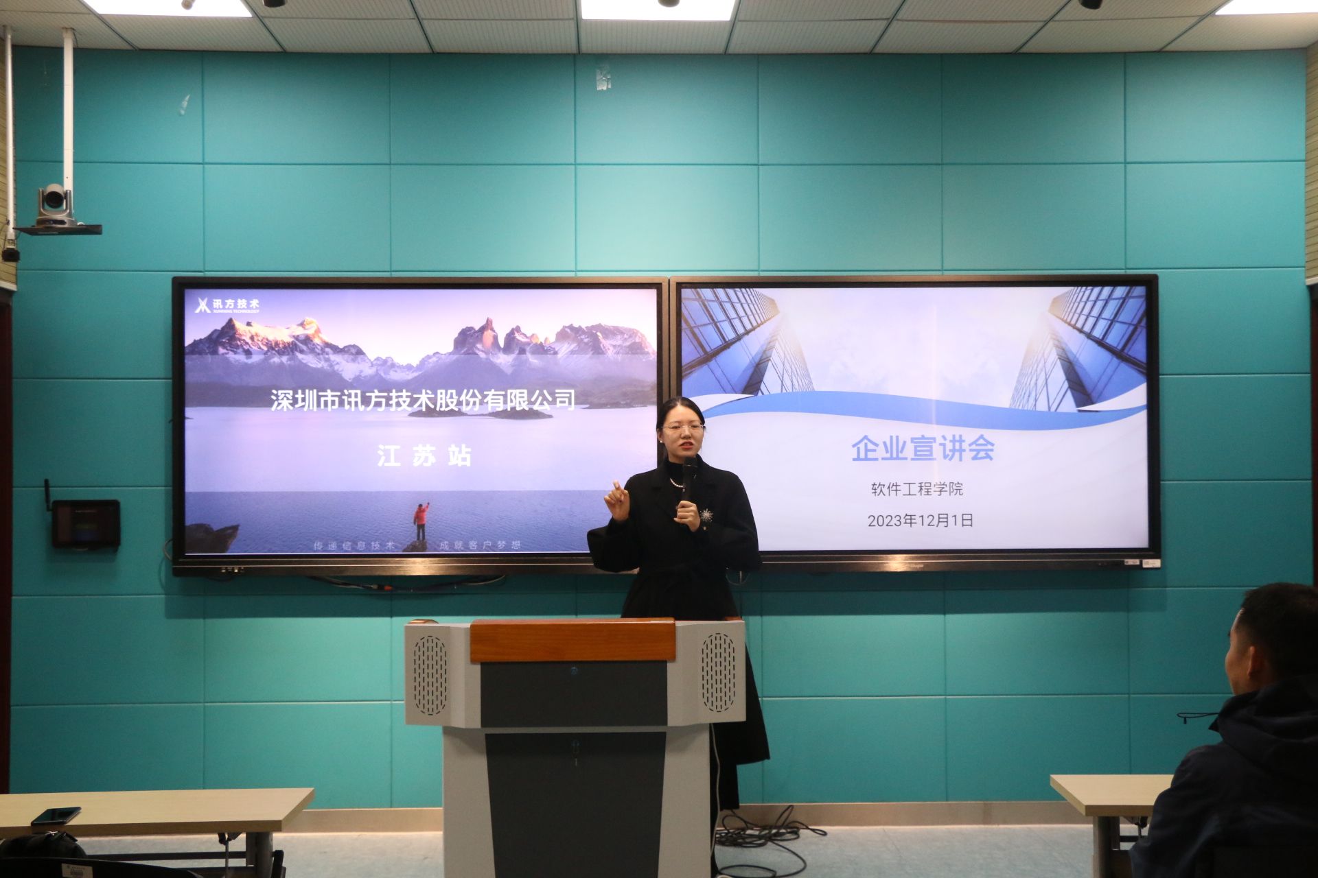 为拓宽就业渠道,推动2024届毕业生尽早就业。12月1日上午太阳集团tyc539macau在科技楼2号楼226教室举办了毕业生专场企业宣讲会。宣讲会邀请到深圳市讯方技术股份有限公司南京分公司舒经理和南京安居瑾家公寓管理有限公司易经理进行宣讲。院党委副书记徐斌、辅导员李勇及部分毕业班学生参加。