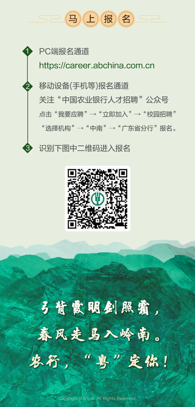 中国农业银行广东省分行2022年春季招聘信息