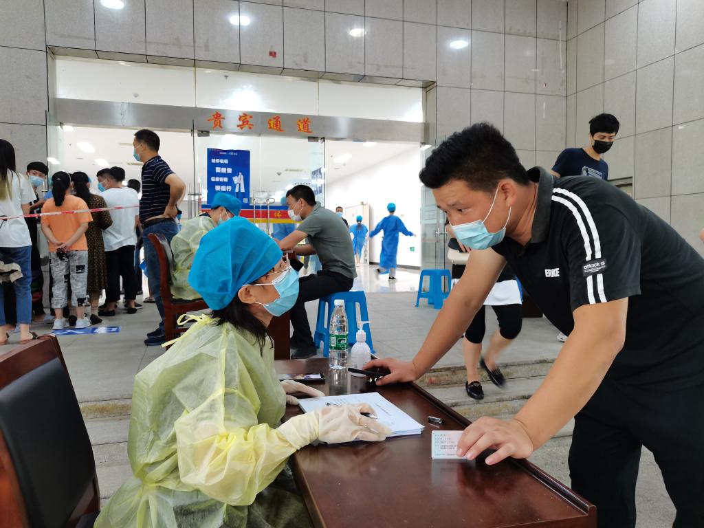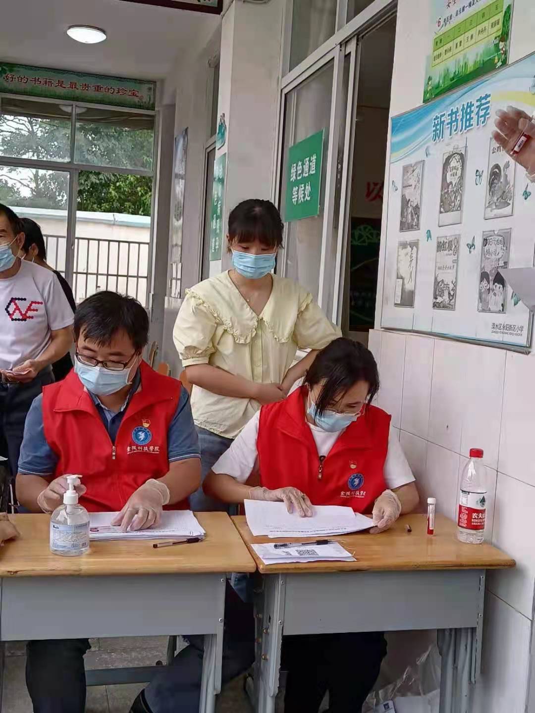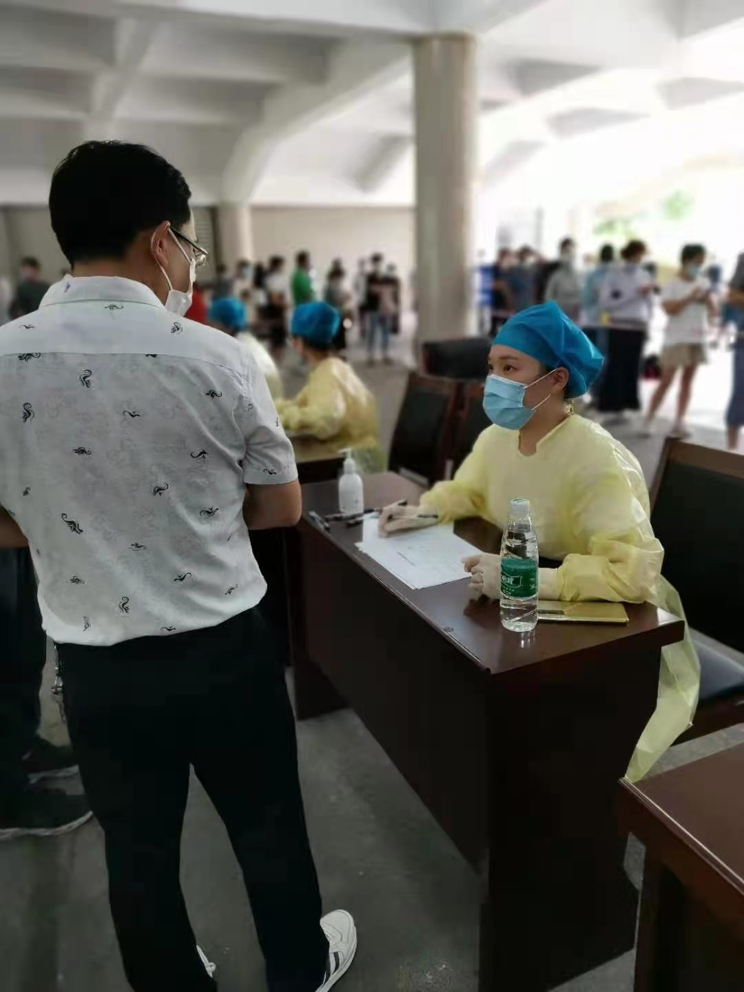 他们中有机关教工党支部书记王爱侠同志和教师第二党支部书记赵海峰同志,两位支部书记带头示范,用抗疫实际行动,践行“我为群众办实事”实践活动;有校优秀教育工作者窦如林同志,“舍小家、为大家”,与同在学校工作的妻子一起做志愿者,共赴抗疫前线;有学院的学工办主任张理航同志,于百忙中主动请缨,到组织最需要的地方去;有新上任的办公室副主任赵园同志,顾全大局、任劳任怨,积极参与溧水体育馆志愿服务,负责机场经停人员的身份信息及详细行程登记工作;有教师党支部组织委刘娅同志,在现场做着记录混检试剂条码号,进行系统登记,扫描检测人的采样码,指导检测人现场完成系统注册和信息填写等平凡工作。