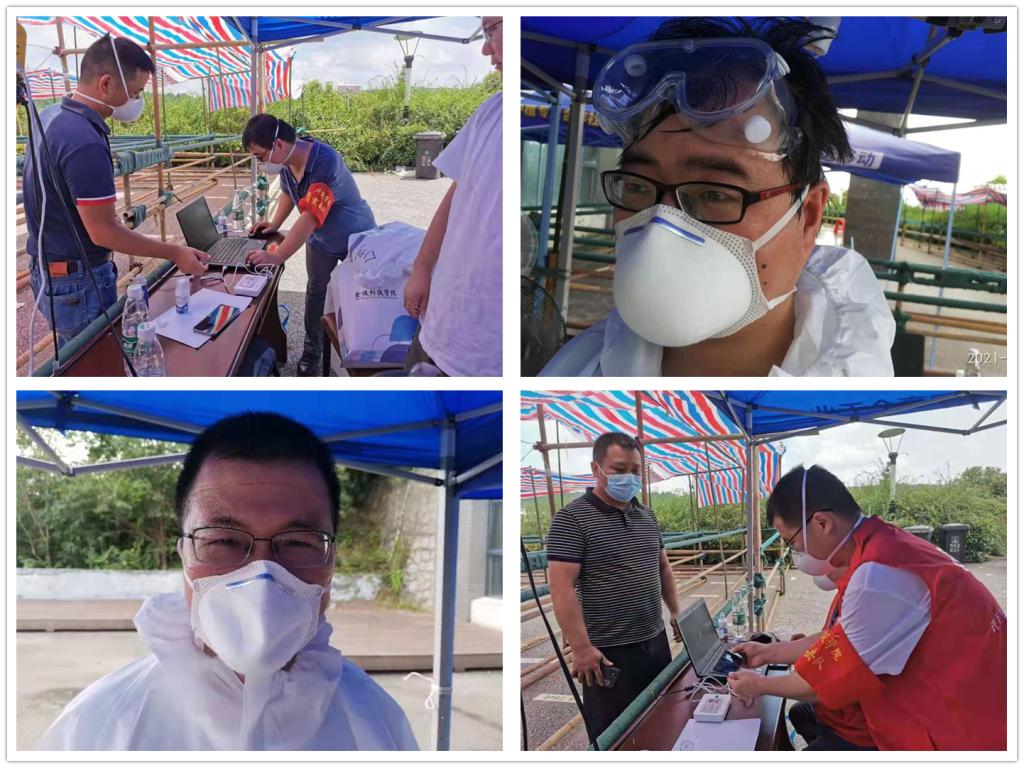 学院党委书记徐志国带头报名参加志愿服务,8月2日,作为学校组织的赴江宁横溪街道许呈村党员志愿服务第一组组长,他带领同组10名志愿者穿着防护服,顶着烈日,全天协助完成1300多名村民的第四轮核酸检测工作。在后面几天的赴许呈村志愿服务的队伍中,经常出现软件学院的老师们的身影,学院党委副书记徐斌在许呈村第六次核酸检测工作主要负责信息登记和检测工作。教师第二党支部书记赵海峰、青年博士教师陈文君、党员教师徐尚瑜、学工办副主任李勇,他们同样充满热情,在检测点、交通值守点、在村里的各条巷子都有他们默默奉献的痕迹。站在疫情防控第一线,每一位软件人都绽放出了与以往不同的光芒。