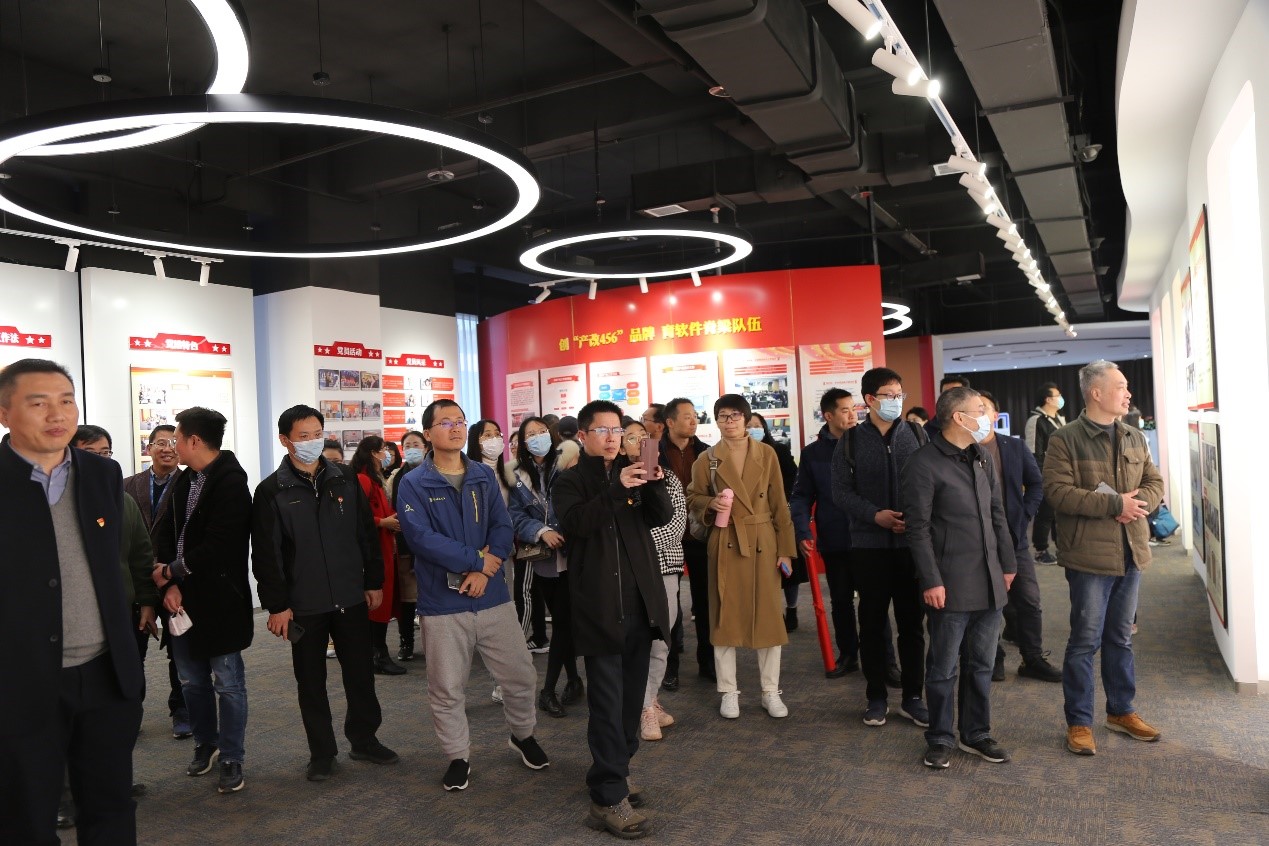 南京软件产业博览馆位于中国(南京)软件谷,是集中展示南京软件名城建设成就和软件产业发展情况的重要窗口。全馆总面积1800平方米,分为南京市馆和软件谷馆两个展区,分别介绍南京市和中国(南京)软件谷的软件产业发展情况,20217月入选南京市第二批党史学习教育基地名单。中国(南京)软件谷坚持“高端化、国际化、品牌化”的发展方向,牢牢抓住软件和信息服务业发展的重大契机,成为中国第一软件产业基地。学院教职工首先参观了南京软件产业博览馆,讲解员通过沙盘模型,让学院教职工了解到软件谷的全貌,南园西园北园全面发展,谷中不同产业集群代表企业,为国家科技创新与技术进步做出巨大贡献。随后,学院一行人来到谷内江苏润和软件股份有限公司参观,江苏润和软件股份有限公司成立于2006年,是中国软件科技产业的大型领军企业。学院教职工在润和软件的工作人员带领下参观了公司展厅,了解公司的发展历程和业务方向。