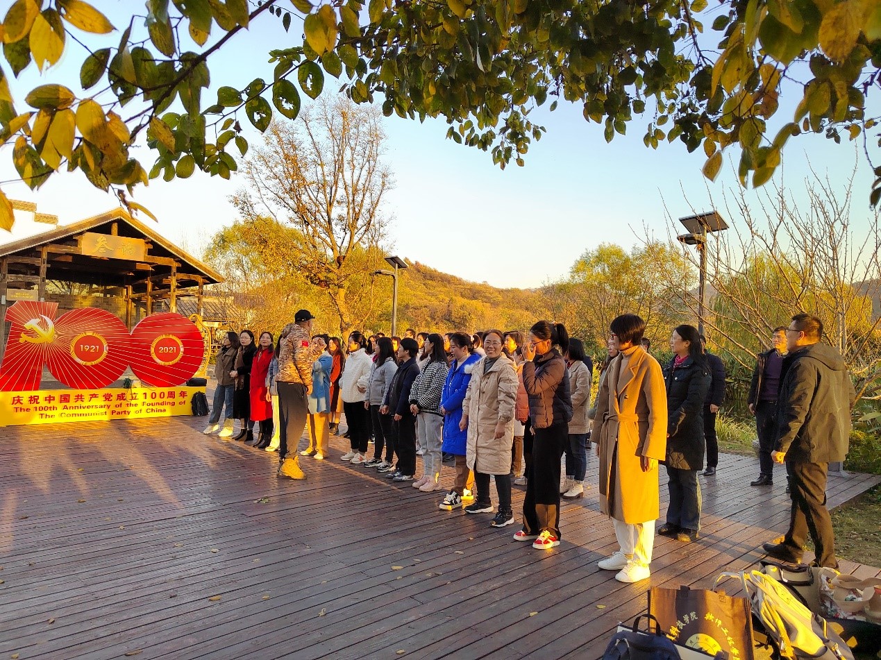 为深入学习十九届六中全会精神,凝心聚力走好新时期的赶考路,11月24日下午,太阳集团tyc539macau分工会组织全体教职工赴南京市第二批党史学习教育基地---栖霞区桦墅村开展素质拓展团建活动。