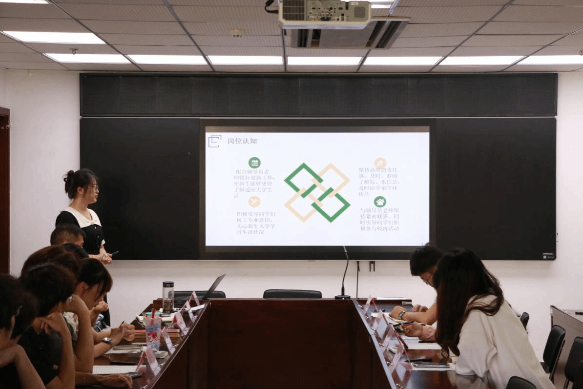会议伊始,每一位参选同学通过PPT展示了自身优势,畅谈辅导员助理工作岗位的深刻理解,自身的能力及素质,工作计划及未来展望,他们展现出了青春风采,精神饱满且自信从容,给所有评委留下了深刻的印象。与此同时,评委们专心聆听、认真记录,并根据在新生报到、入学教育期间有可能出现的问题进行提问,让每一位参选同学明白作为一名新生辅导员助理,最重要的是奉献精神,与随机应变的处事能力。